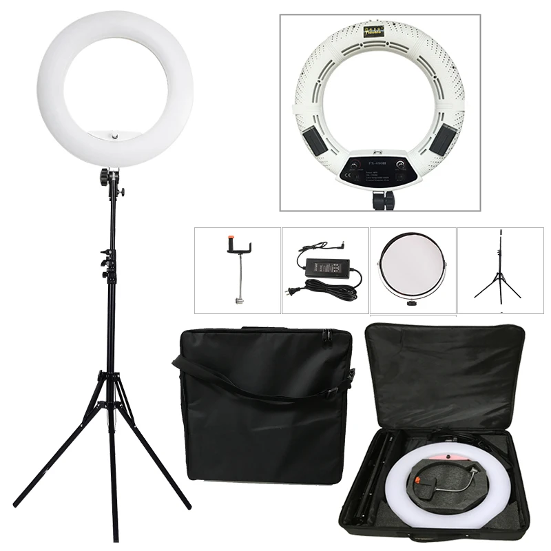 Slide Yidoblo FS-480II 5500K Bio-color Camera Photo/Studio/Phone/Video light 18'' 480 LED Ring Light LED Lamp+ 2M tripod +Soft bag Kit